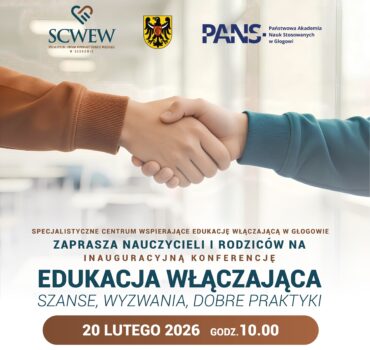 20 lutego 2026 r. o godz. 10.00 w siedzibie Państwowej Akademii Nauk Stosowanych w Głogowie (ul. Piotra Skargi 5) odbędzie się Inauguracyjna Konferencja SCWEW w Głogowie pn. „Edukacja włączająca – szanse, wyzwania, dobre praktyki”. Wydarzenie zostanie zrealizowane w formule stacjonarnej z możliwością udziału online.